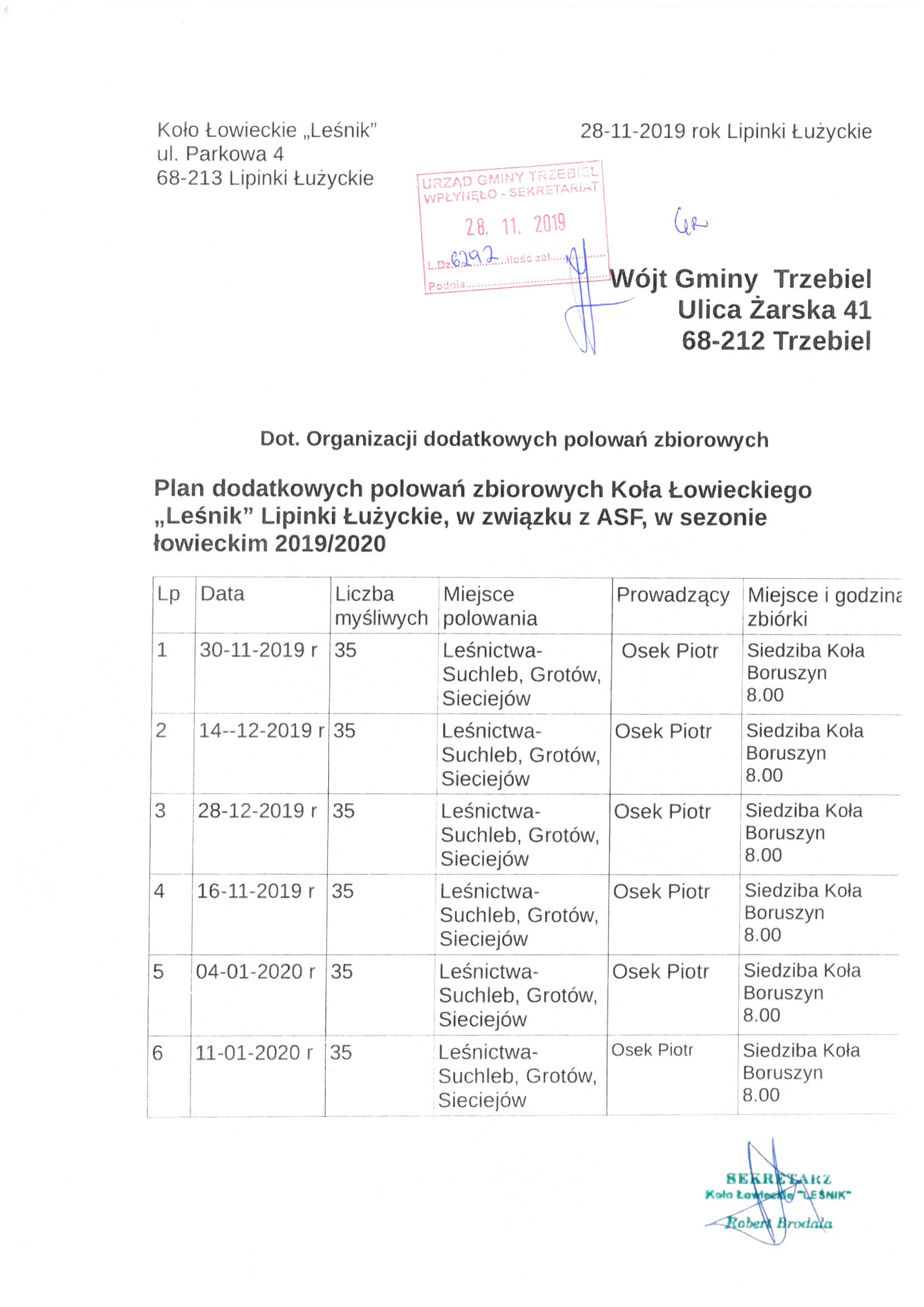Koło Łowieckie Leśnik Organizacja dodatkowych polowań zbiorowych